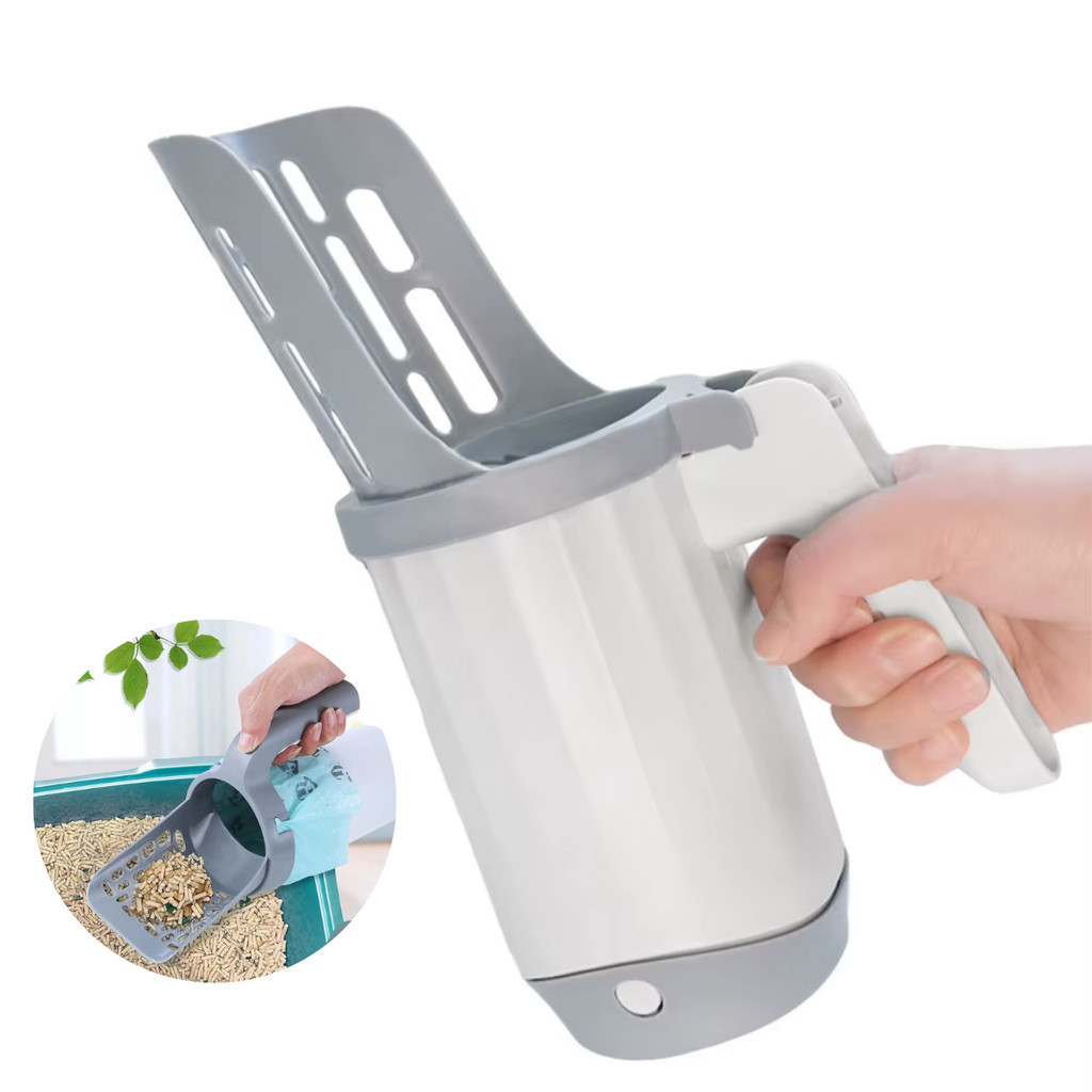 Pá Cata Caca para Caixa de areia com Saquinho Coletora de Coco Fezes de Gato e Cachorro Reservatório Plástico pet Cães