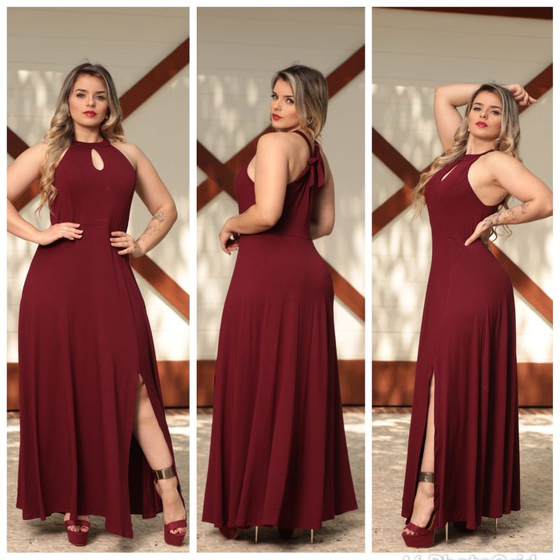 Vestido Longo de Viscolycra,Com Fenda,Festa,Com Bojo,Moda 2023