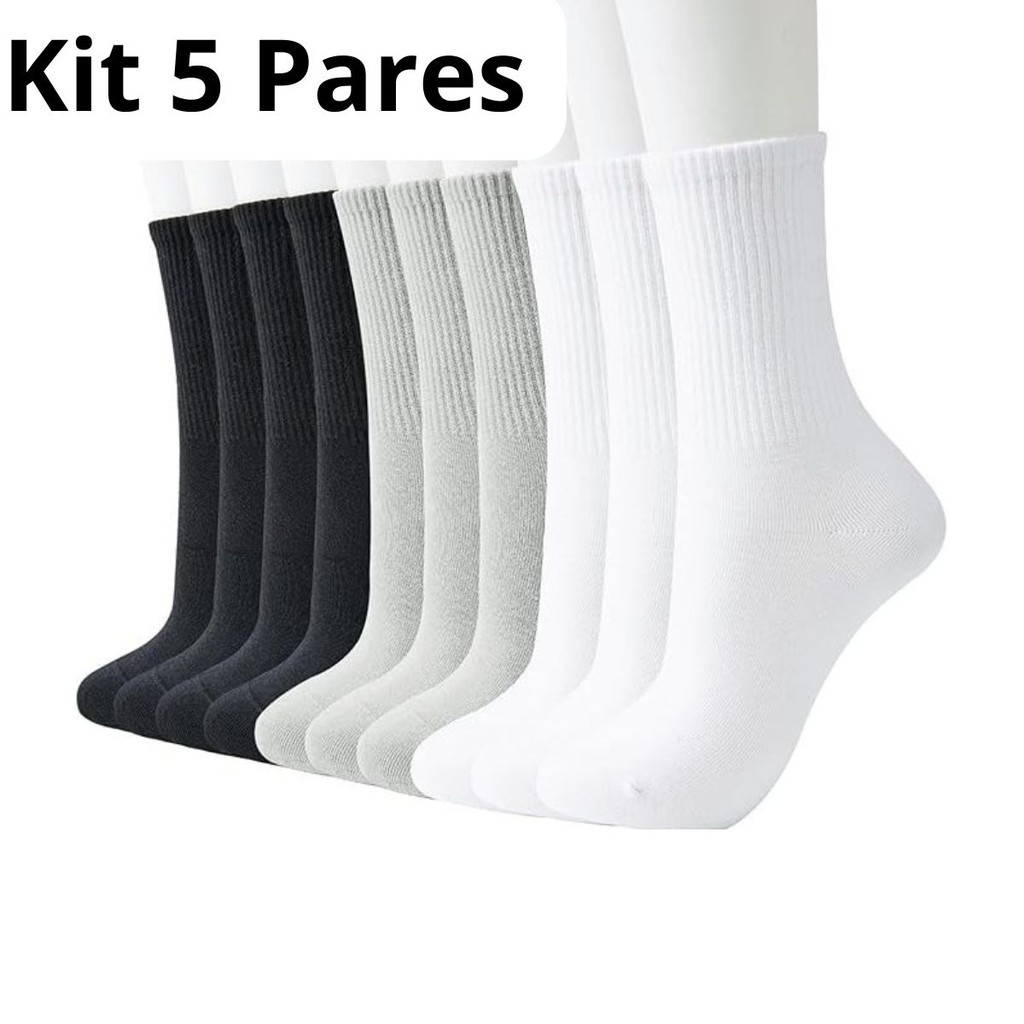 Kit 5 Pares de Meias de Algodão Cano Alto Unissex Masculina Feminina Cano Longo Meia Lisa Sport