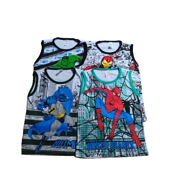 kit 5 Camiseta Camisa regata Infantil menino masculina super herois Algodão