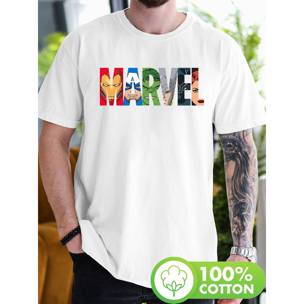 Camiseta Unissex Premium Plus size Marvel Avengers Super Heróis Verão Básica Oversized 100% Algodão Confecção Própria