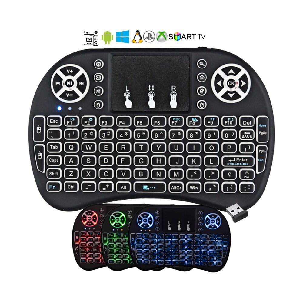 Mini Teclado sem Fio Controle Touchpad Led Iluminado Wireless SmartTv Tv Box Console Pc