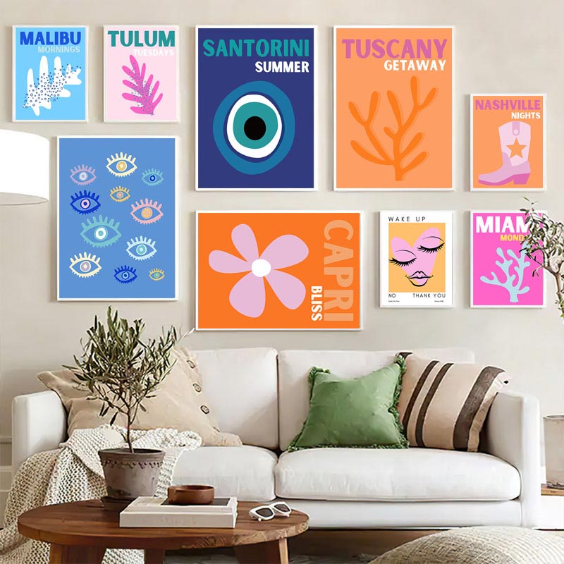 Olho Abstrato Mykonos Capri Bliss Santorini Flor Cartazes E Cópias Da Lona Pintura De Parede Nórdico Murals Sala De Estar Decoração