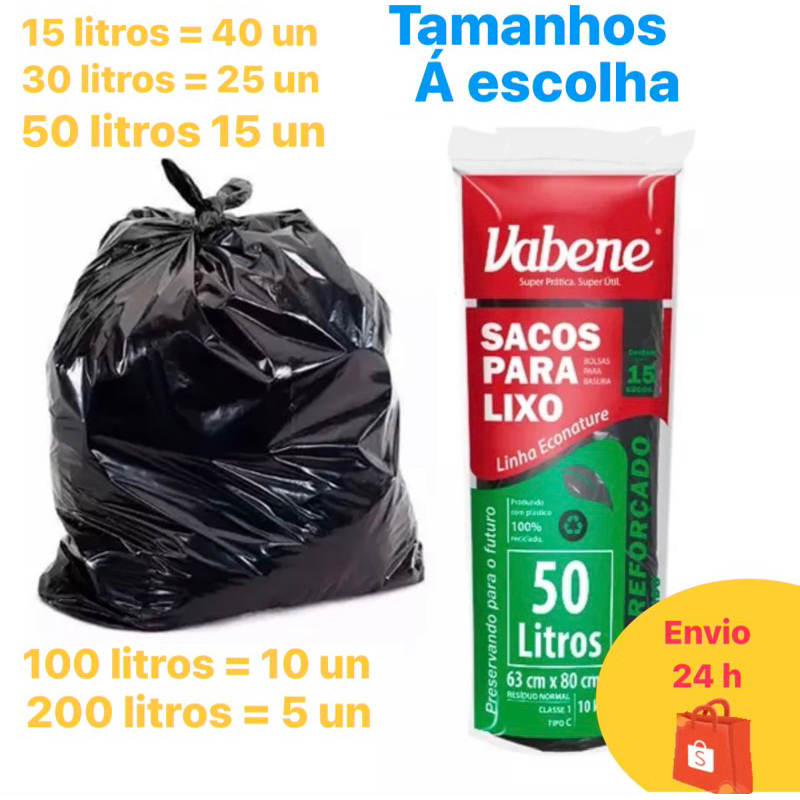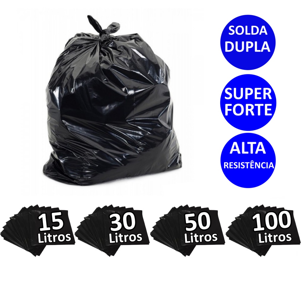 Saco de lixo preto plástico resistentes para lixeira econômico vários tamanhos 15 litros 30 litros 50 litros 100 litros