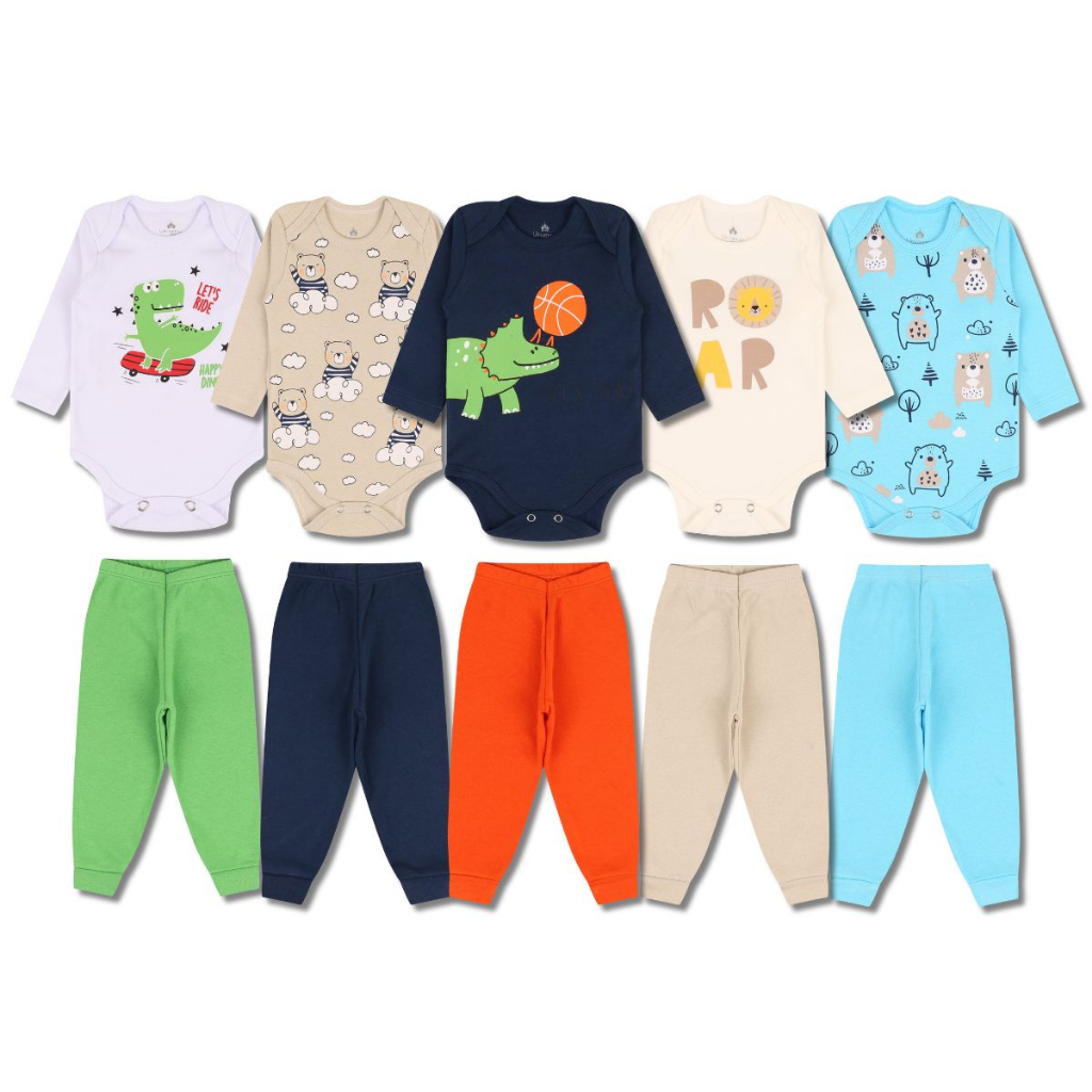 Kit 12 Peças de Roupas para Bebê 6 body+6 calças/mijão - Promoção - Kit com 6 body + 6 Mijão de Roupa Infantil Bebe Barato