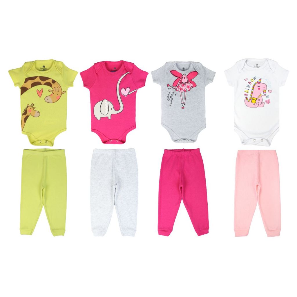 Roupa de Bebê Kit 8 peças (4 body M/C em malha e 4 mijão em malha) Menino, Menina ou Unissex