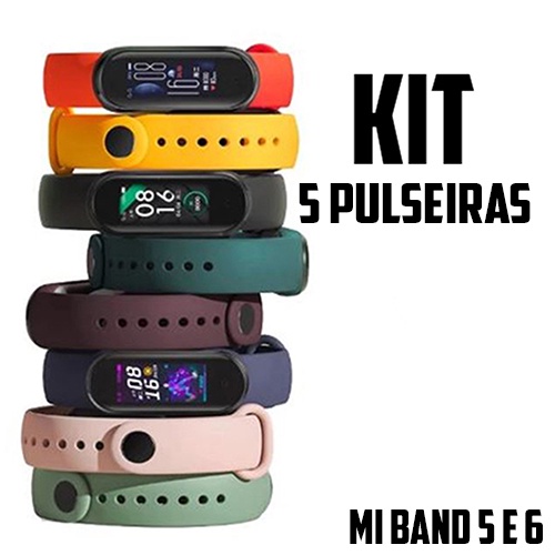 Kit 5 Pulseiras para miband 5 e 6 promocao 5 pulseiras de silicone para mi band 5 e 6