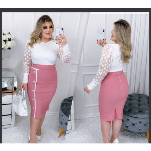 Vestido Social Evangélico Pus Size Tubinho Moda Evangélica Rosa E Branco Tule Festas Congressos Eventos