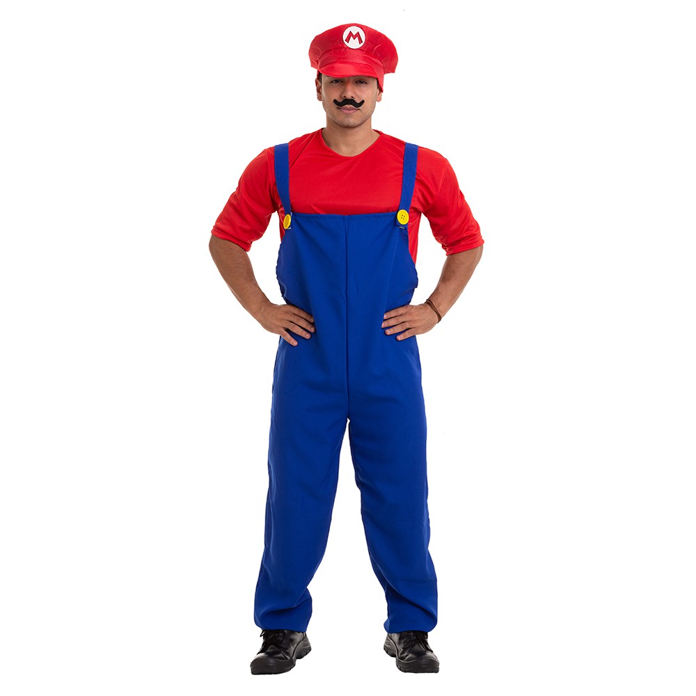 Fantasia Mario Bros Adulto Masculino com Quepe e Bigode