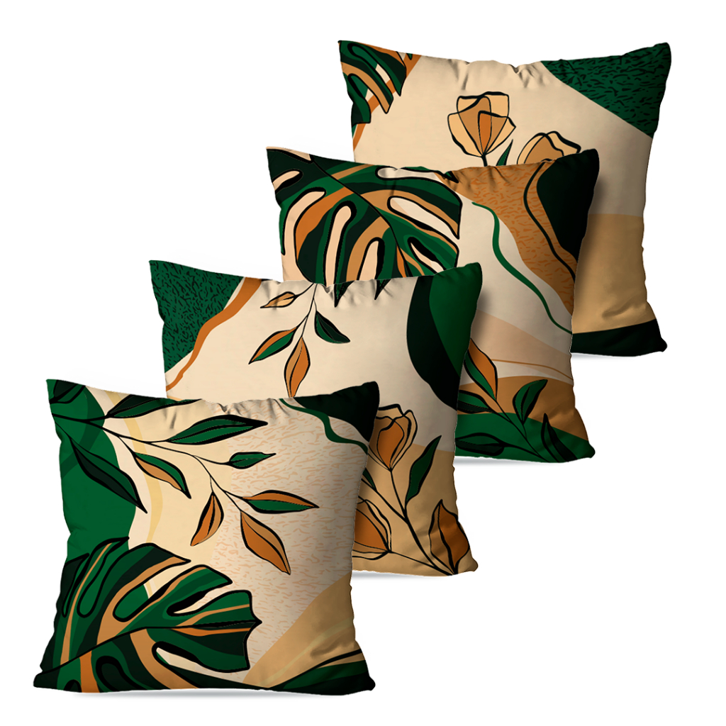 Kit 4 Capas de Almofadas Decorativas 45x45 - Floral Verde e Bege