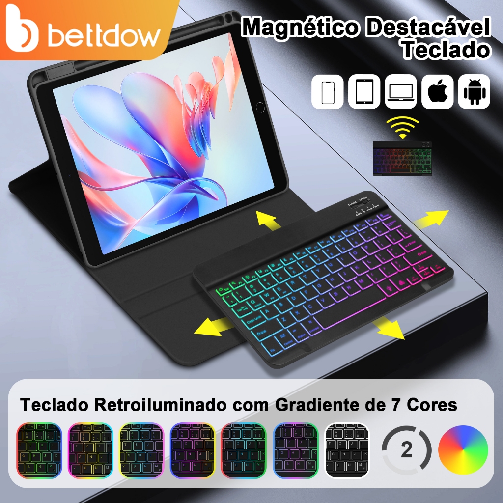 BETTDOW Capa de couro para tablet com teclado magnético + compartimento para caneta adequado para iPad 2022 2020 10 Air4 5 10.9 7 8 9 10.2