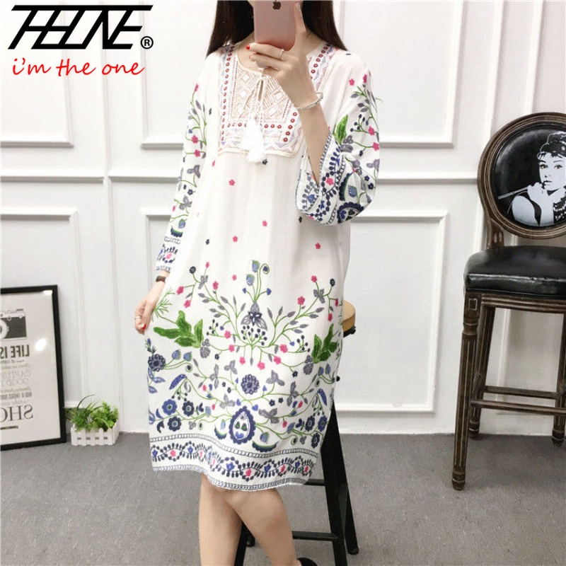 THHONE Indian Dress Women Korean Style Midi Casual Floral Flower Bordado De Viagem De Férias Praia Comprimento Joelho Longo Tassel Impressão Algodão Baju Gaun Ready Stock Vestidos Senhoras
