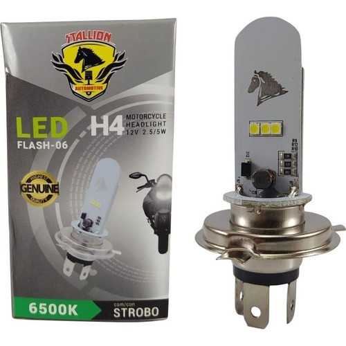 Lâmpada Farol Led H4 6500k Super Branca Stallion Cavalinho Com Strobo Efeito Xenon