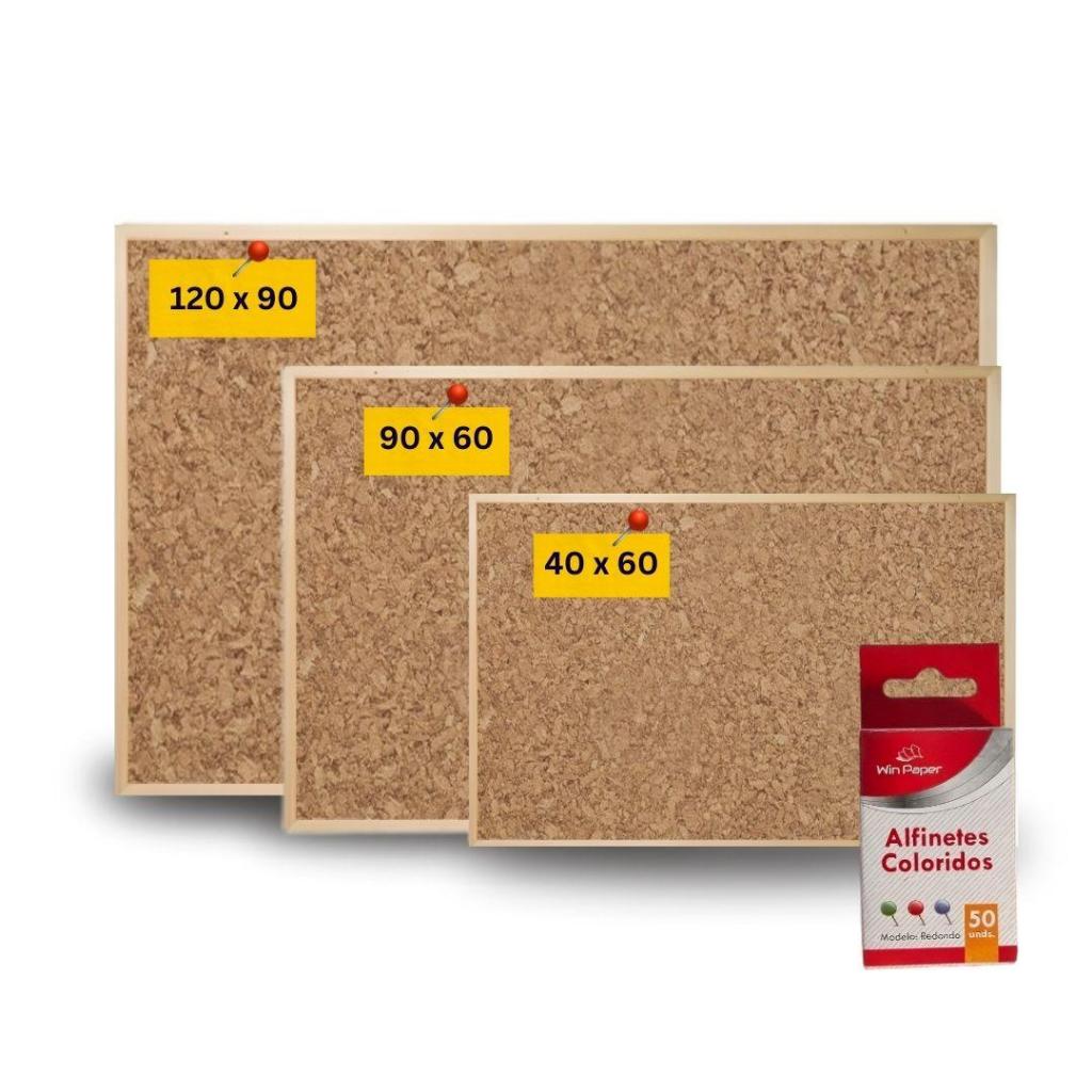 Quadro de Cortiça Luxo Souza 60x40 90x60 120x70 Avisos Lembretes + 50 Alfinetes Grátis