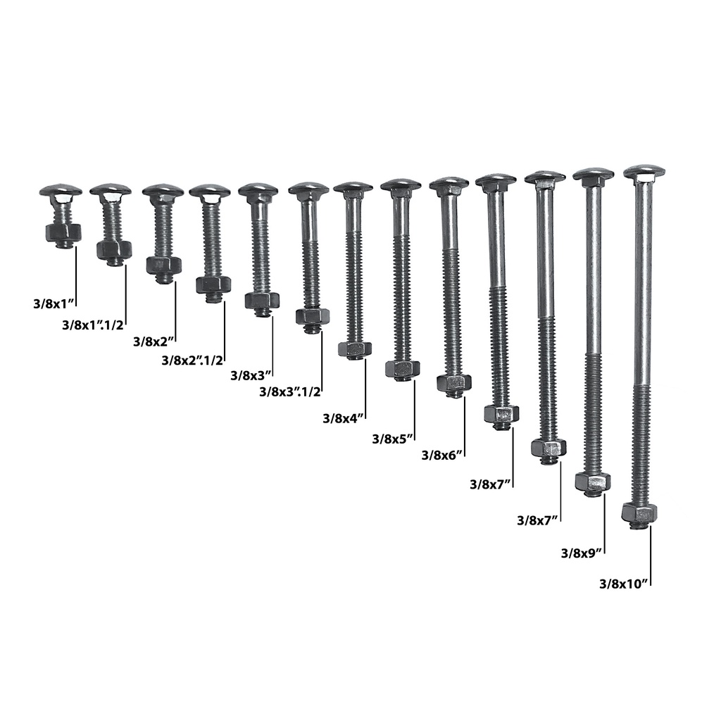 Parafuso Francês Zincado com Porca e Arruela 1/4 - 3/8 - 5/16 - KIT COM 10 PEÇAS