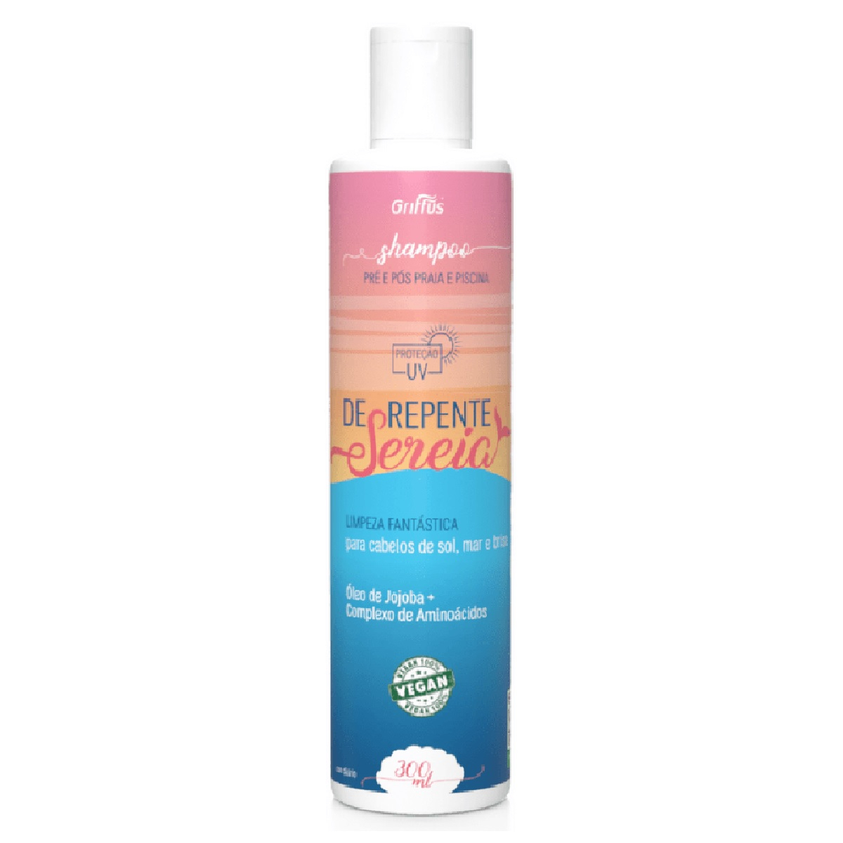 SHAMPOO PRé E PóS PRAIA E PISCINA PARA CABELOS DE SOL, MAR E BRISA VEGANO DE REPENTE SEREIA GRIFFUS 300ML