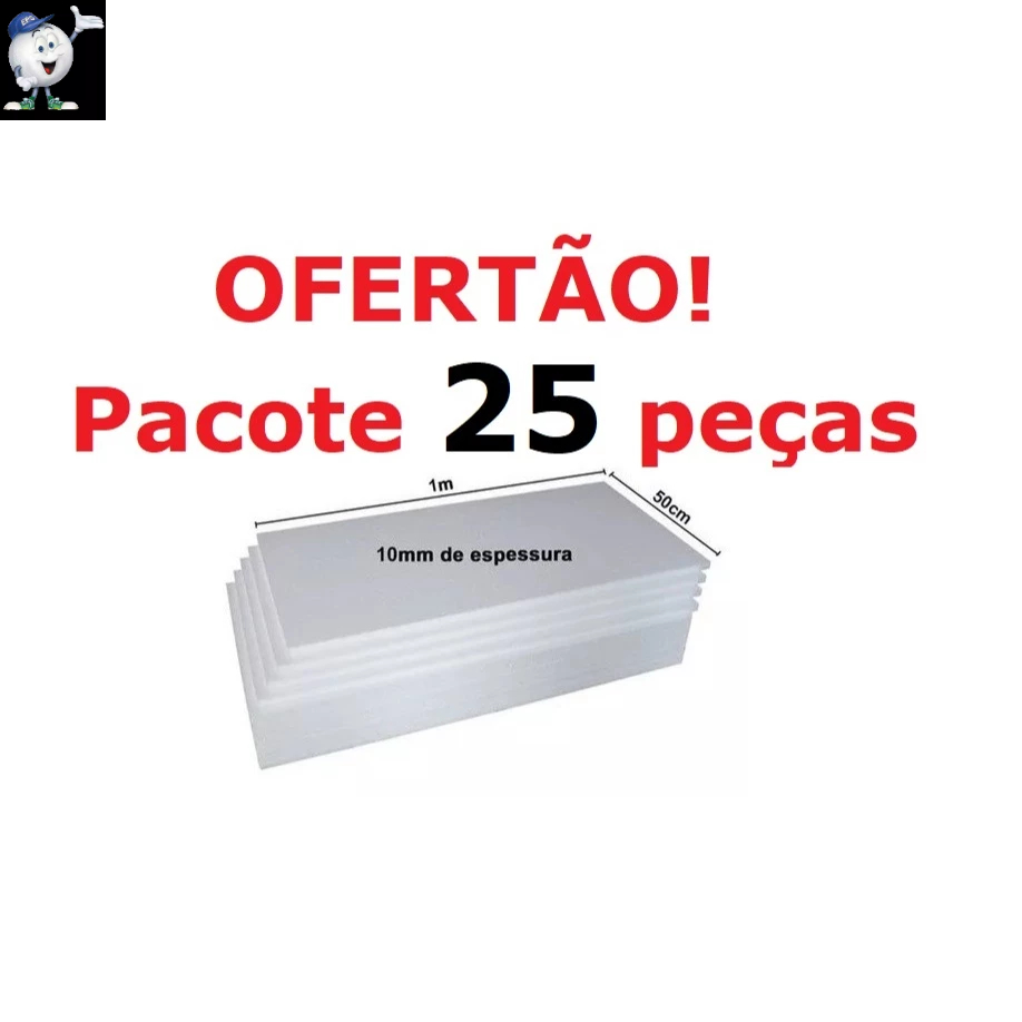 Placa de Isopor de 1 cm (10 mm), em (Poliestireno Expansível) EPS 100 X 50 X 1,0 cm com 25 peças
