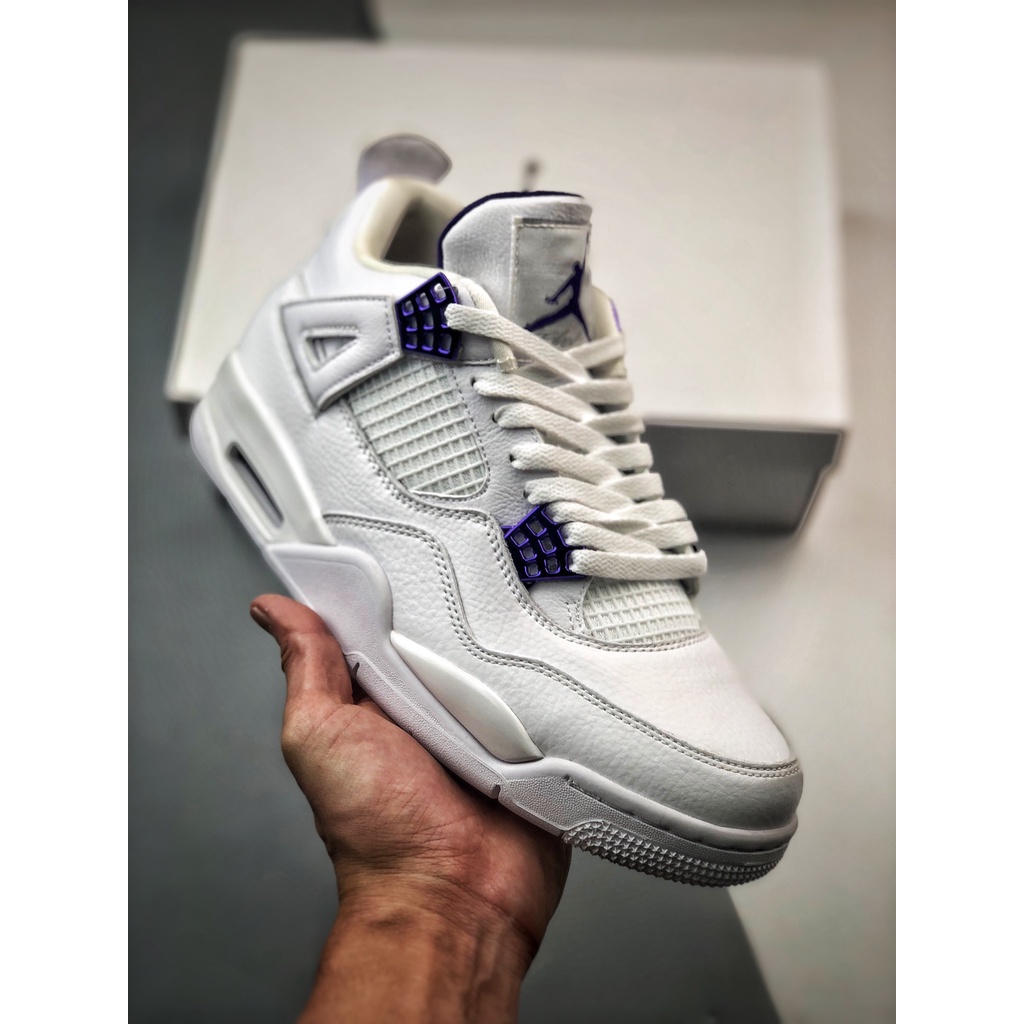 Venda Por Tempo Limitadoair Jordan 4 Retro " purple Metalic " Joe 4 Sapatos De Basquetebol Brancos E Roxos Que Combinam Com A Cor