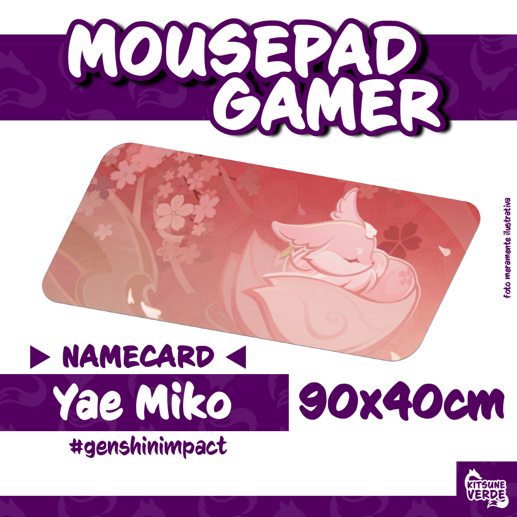 Mouse Pad Gamer Personalizado - Namecard Yae Miko - Genshin Impact - 90x40 - 60x40 cm