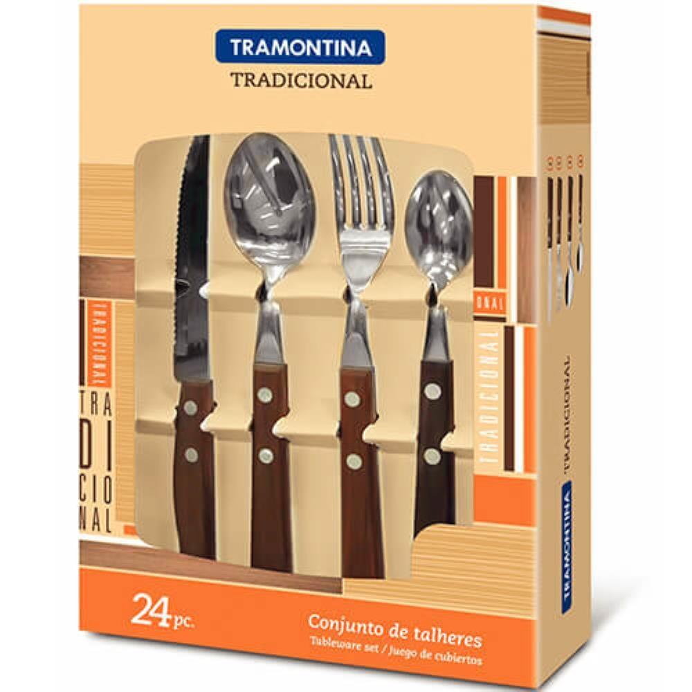 Faqueiro Tramontina 24 Peças Tradicionais Sortido com Laminas de Aço Inox e Cabos de Madeira 22299050