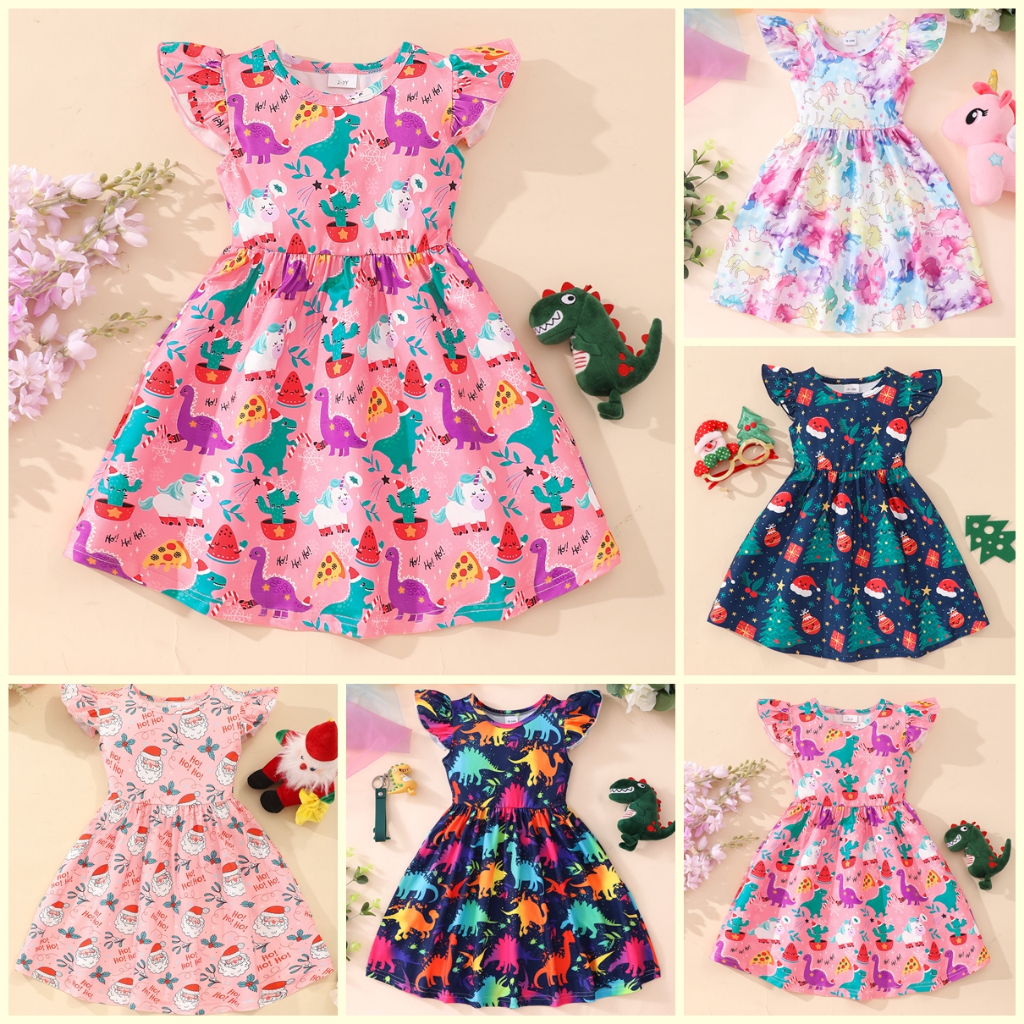 2024 Vestido De Natal Para Meninas Verão Manga Curta Moda Fofa Conjunto De Roupas 1 2 3 4 5 6 7 8 Anos