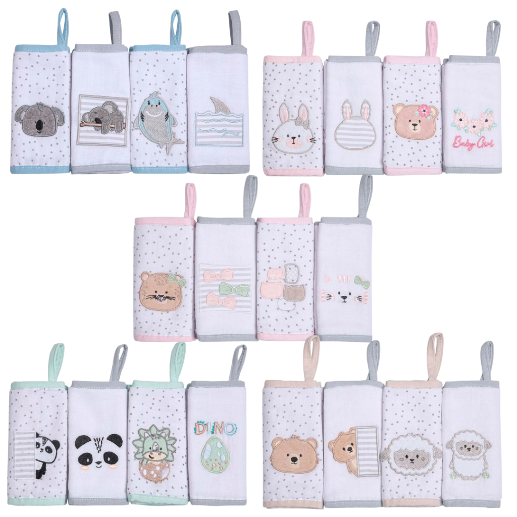 KIT 12 Peças Pano de Boca Fralda Toalhinha Com Overloque 100% algodão 30cm x 30cm em Promoção