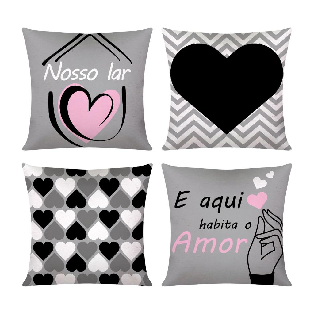 Kit c/ 4 Capas de Almofada Decorativas Geométricas 42x42 Gratidão e Fé Cinza