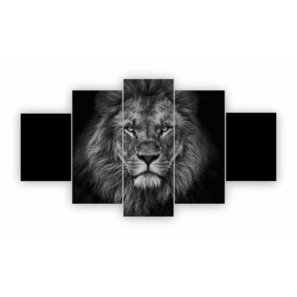 Quadro Jesus Leao De Juda Hd 5 Peças Mosaico Preto E Branco