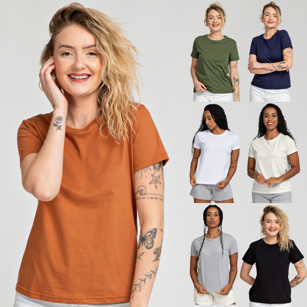 Camiseta Feminina Gola Careca Redonda Basica Lisa 100% Algodão Penteado- T-shirt Premium