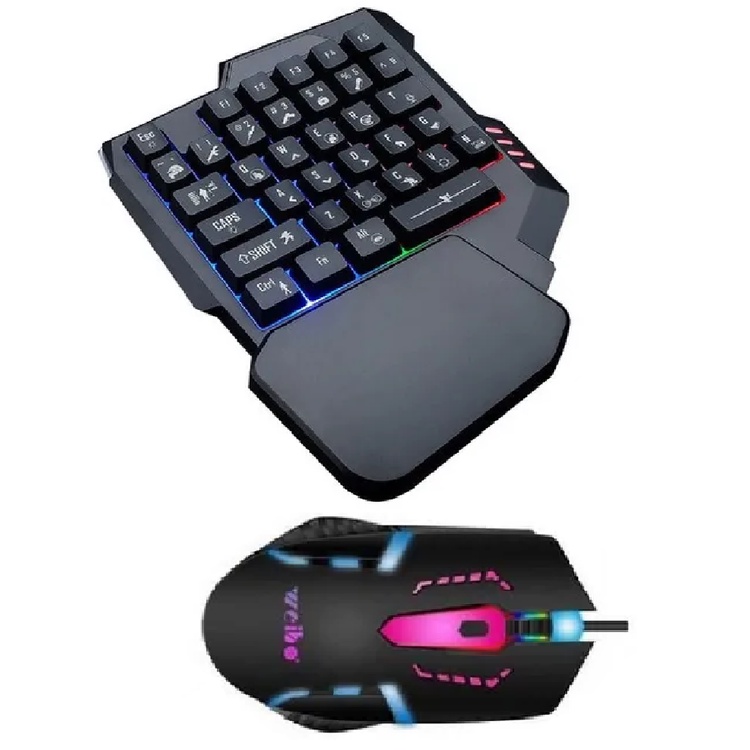Kit Teclado Mouse de Uma Mão Usb Rgb Led Multimídia Gamer Jogador Game Jogo