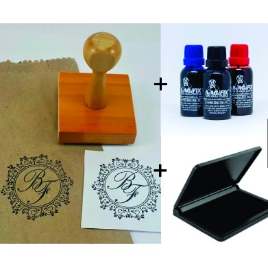 Kit Carimbo Artesanal Personalizado 5x5cm + Almofada nº 3 com Tinta para sacolas, tags, caixas, papel de seda