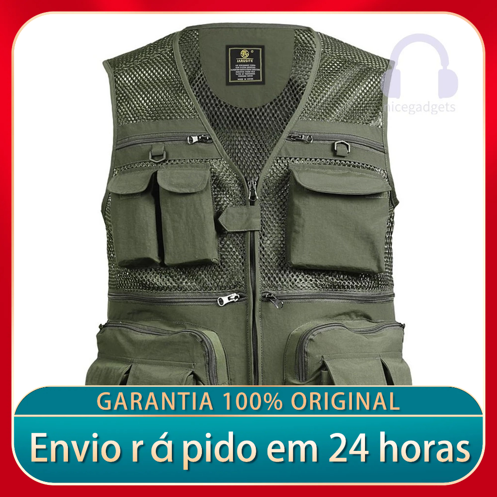 Colete Esportivo De Pesca Malha Fina Para Homens Ao Ar Livre Respirável De Trabalho De Bolso Múltiplo Macacão Fotográfico De Roupas