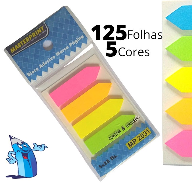 Bloco Adesivo Marcador de Páginas 5 Cores Neon Seta e Reto MASTERPRINT