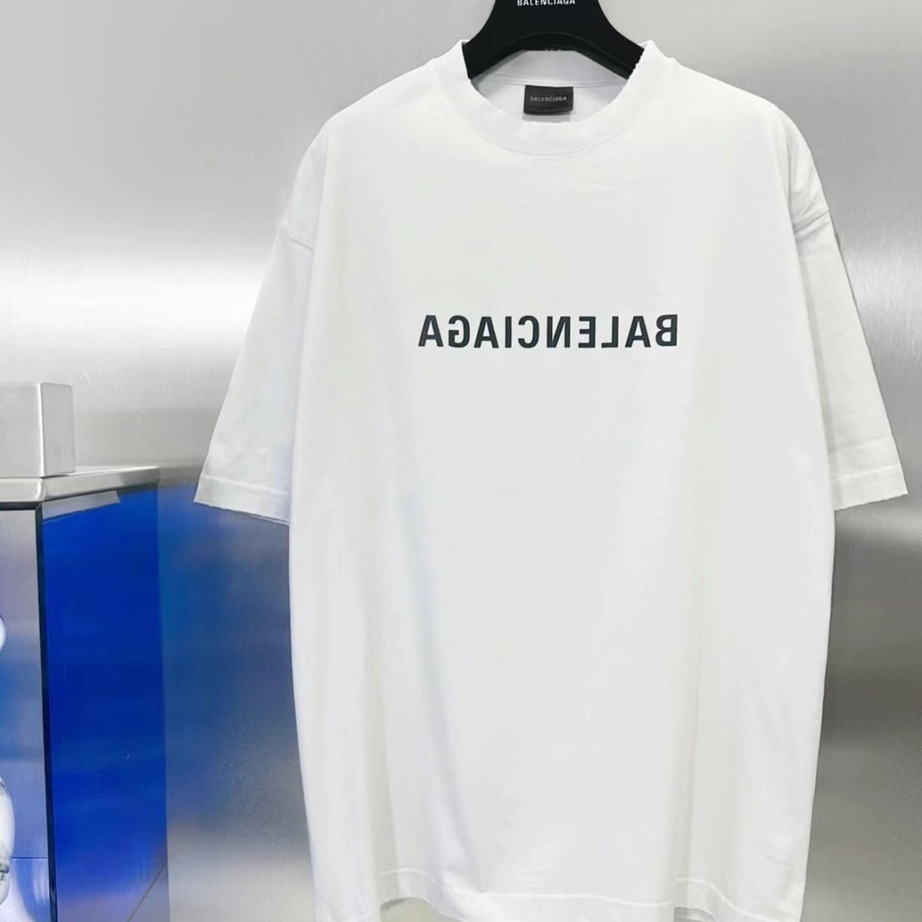 Balenciaga2024 high-end 260g novo Paris invertido letras espelhadas impressão de camisetas pesado verão masculino e feminino plus size casual clássico T