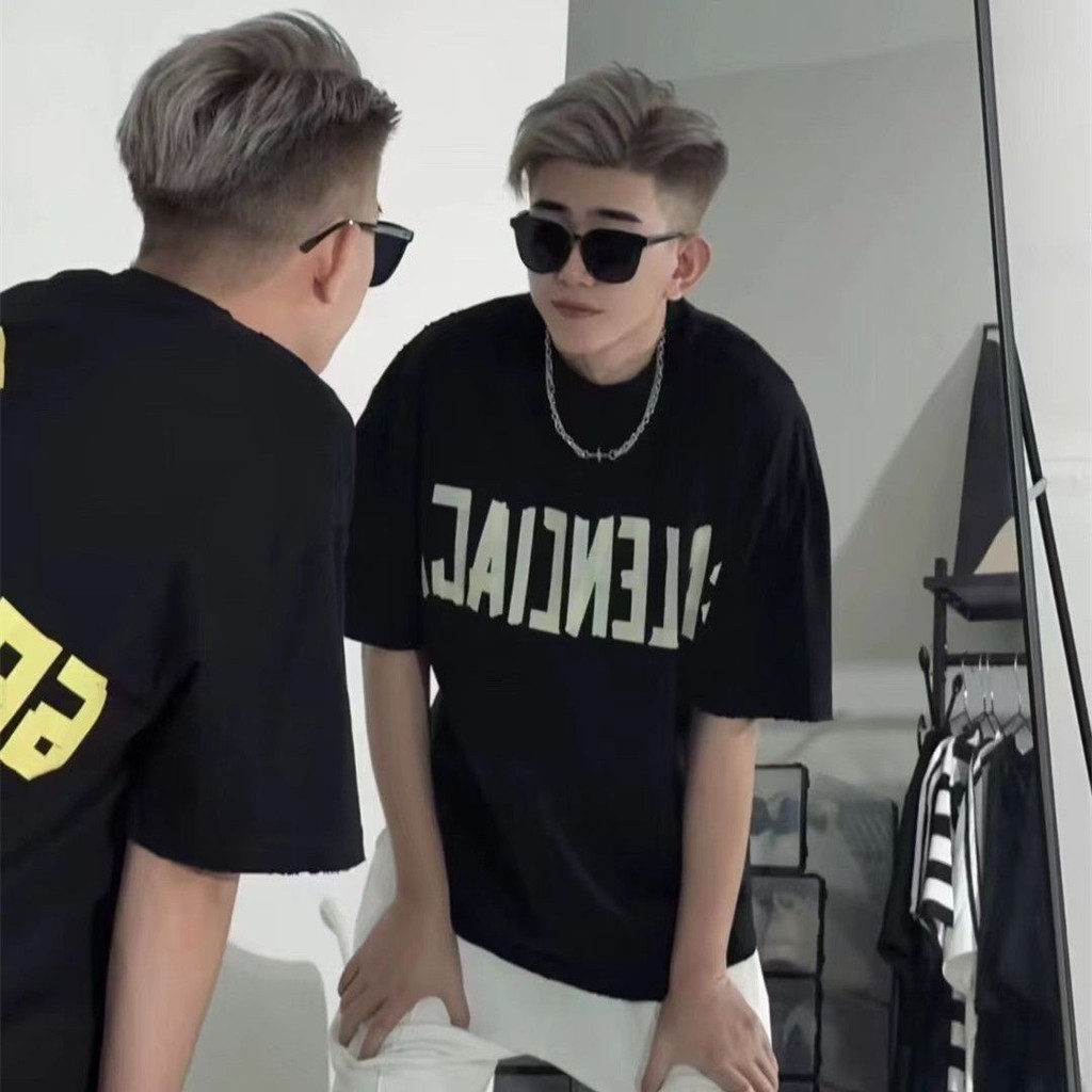 Balenciaga2024 original Pesado e engrossado verão marca da moda b casa com letra de reflexão gola redonda para homens e mulheres t-shirt de manga curta maré de meia manga casais de compaixão