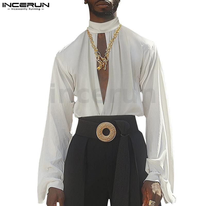 INCERUN Homens Slim Fit Manga Bufante Blusa De Comprida Cor Sólida Corte Formal Camisas De Festa