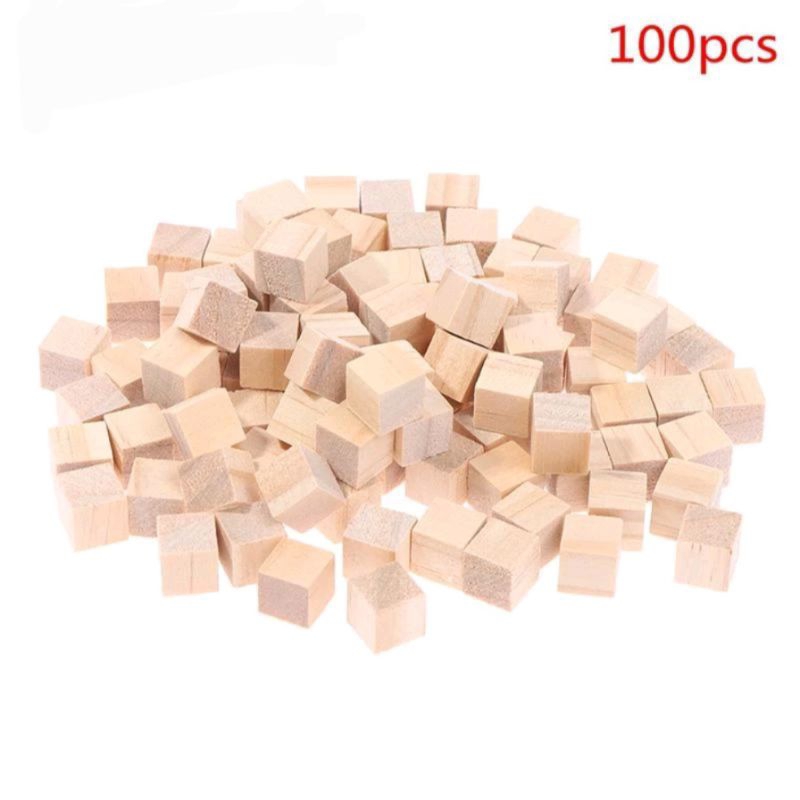 100pçs mini cubos sólidos quadrado de madeira não acabado para trabalho e decorações
