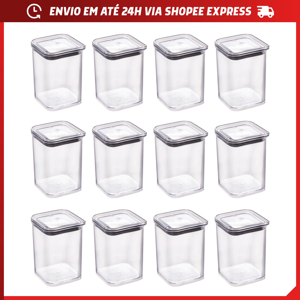 Jogo 12/6 Peças Potes Herméticos Kit Porta Condimentos Temperos Plasútil Acrílico Empilhável 170 mL
