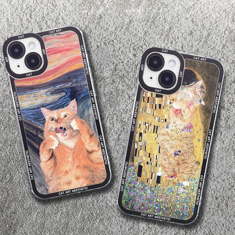 Arte Estética Van Gogh Mona Lisa O Gritar Divertido Gato Capa De Celular Para Samsung Galaxy A54 A53 5G A23 A52 A52S A32 A33 A73 A72 A13 A14 A34 A51 A71 Olhos De Anjo Capas De Silicone Macias