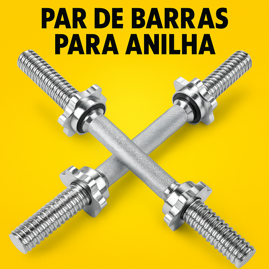 Par de Barra Halter 40cm Maciça Cromada Com Rosca Barra De Halteres