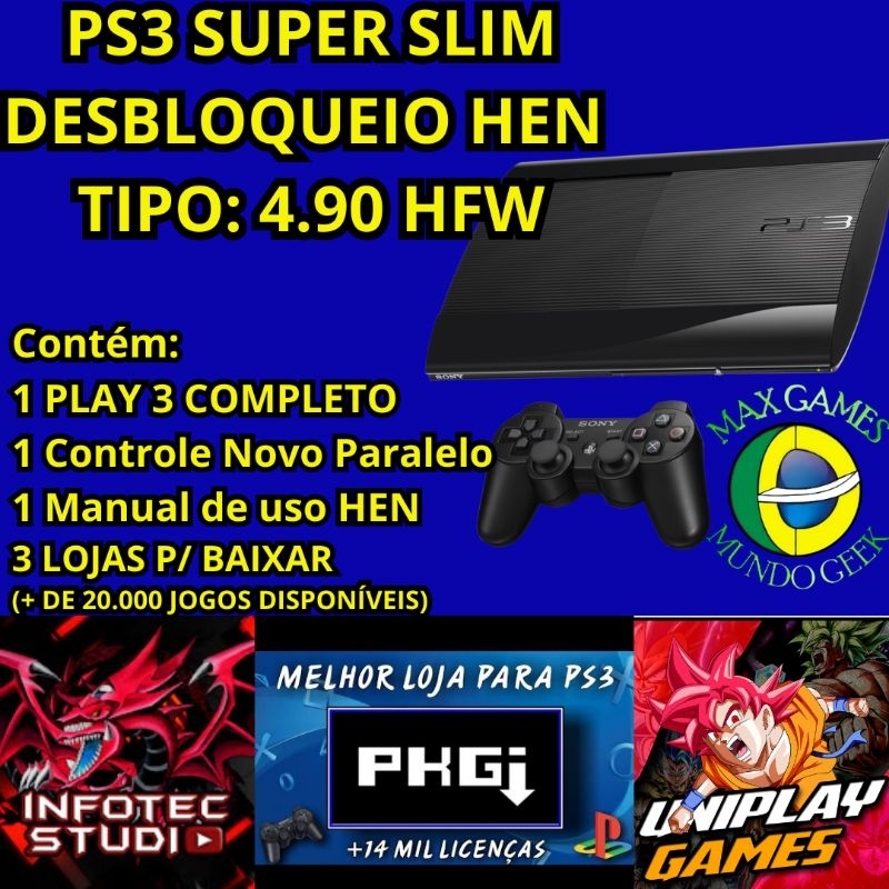 PS3 PLAYSTATION SUPER SLIM 250 GB COM *H.E.N.* 1 CONTROLE - ENVIO FILMADO E FOTOGRAFADO