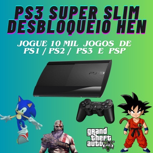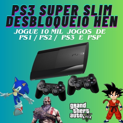 PS3 PLAYSTATION SUPER SLIM 500 GB H.E.N. COM 1 CONTROLE ENVIO FILMADO E FOTOGRAFADO SONY