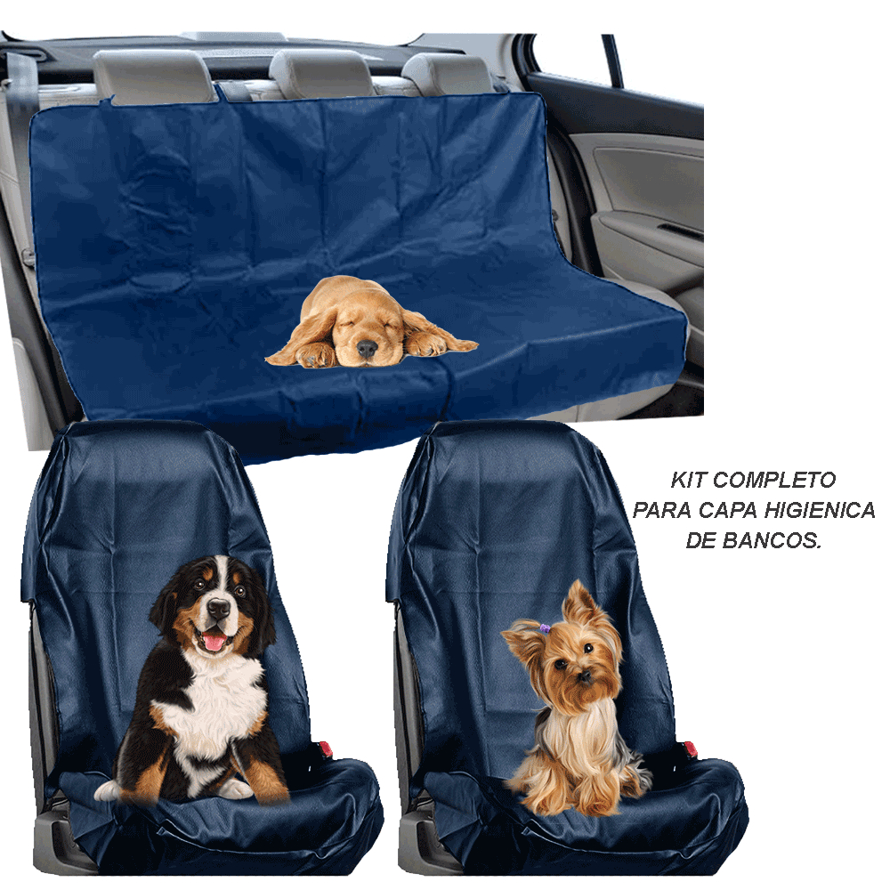 KIT CONJUNTO COMPLETO AZUL BANCOS DIANTEIRO E TRAEIRO Capa PROTETORA PET de Assento AZUL CARRO AUTOMOTIVO Higiênico Impermeável para Carro e Pick-up Mantenha Seu Veículo Impecável e Seu Pet E TRASNPORTE