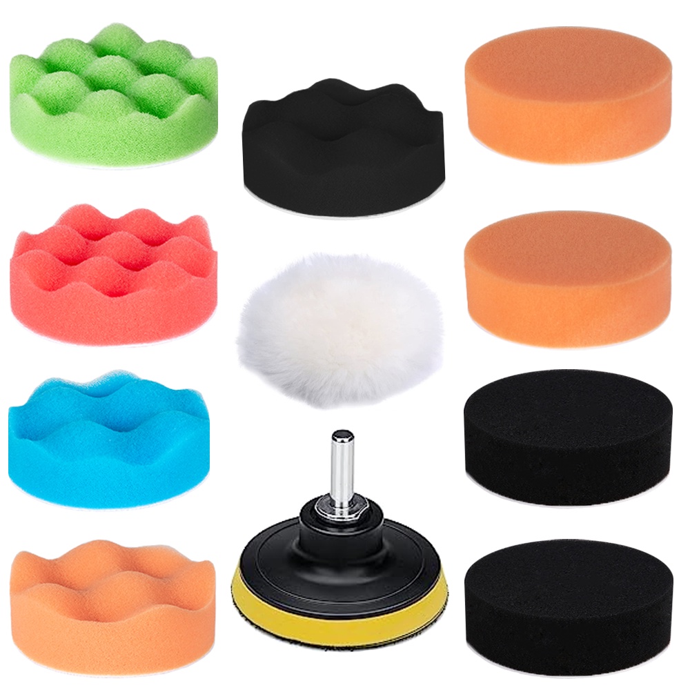 Kit Polimento Automotivo com 11 Peças 3" Polegadas | Boinas de Espumas Onduladas, Lisas e de Lã | Indicado para Estética Automotiva e Limpeza em Geral | Marca: JEX Modelo: BEP-001
