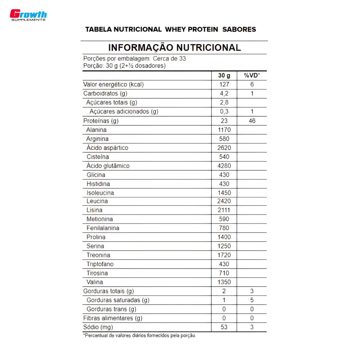 100% Whey Protein Concentrado (80% Proteína Pura) - Pacote 1000g - Growth Supplements