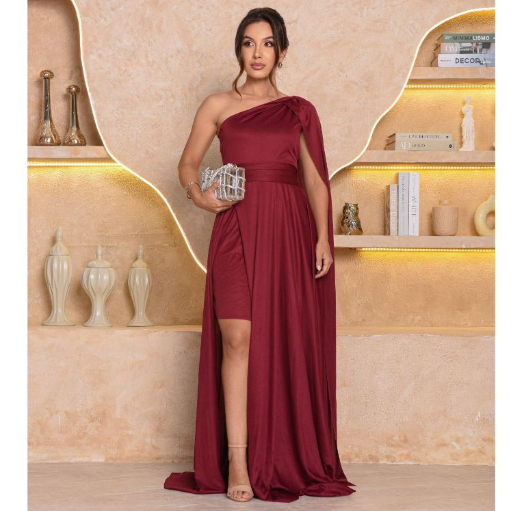 Vestido Feminino Longo com Capa Festa Casamento Madrinhas Formatura Plus Size