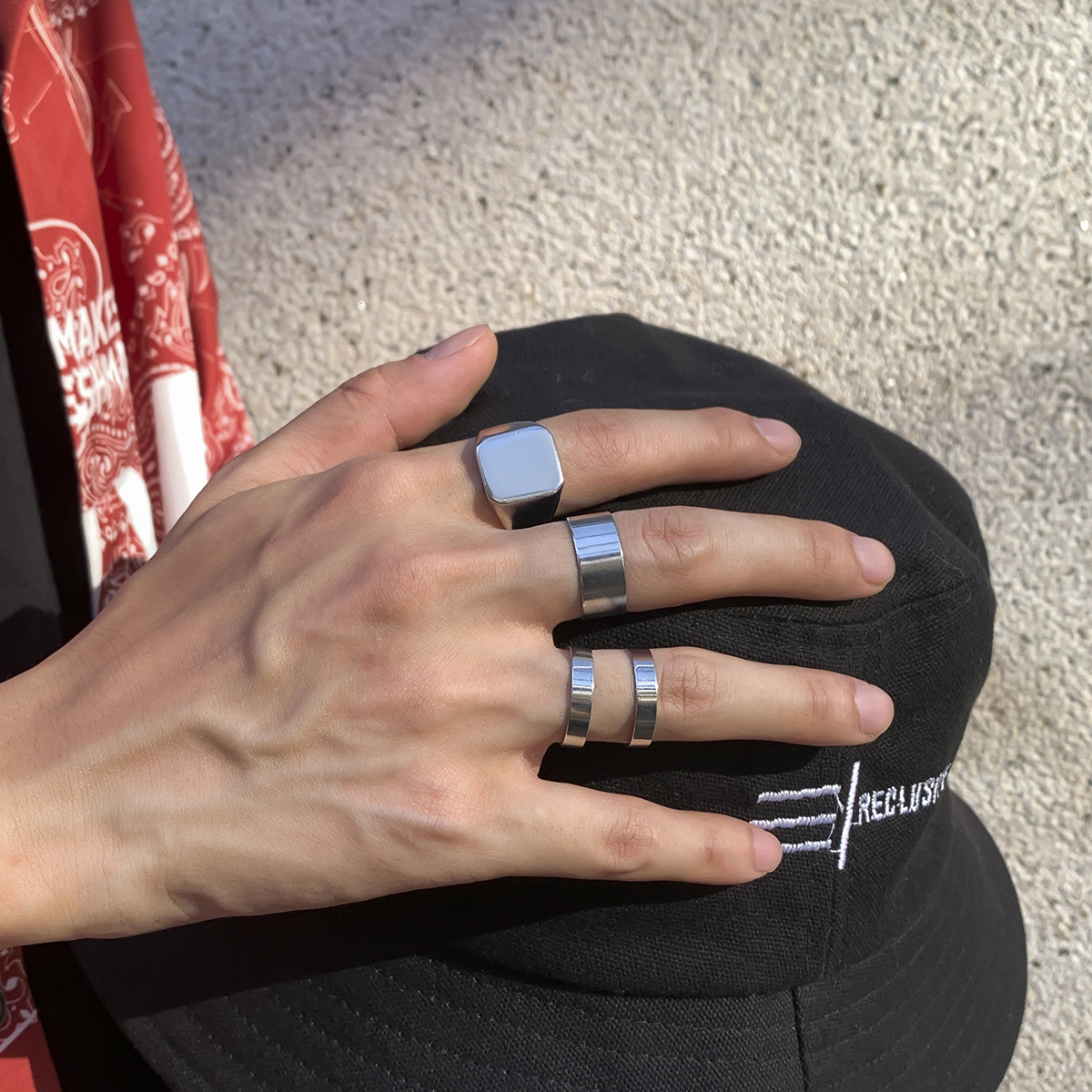 4 Pcs Ampla Superfície Lisa E Conjunto De Anéis Quadrados Geométricos Para Homens De Dedo De Rua Estilo Japonês Coreano Acessórios Na Mão 2024 Fashion Jewelry Presentes Masculinos