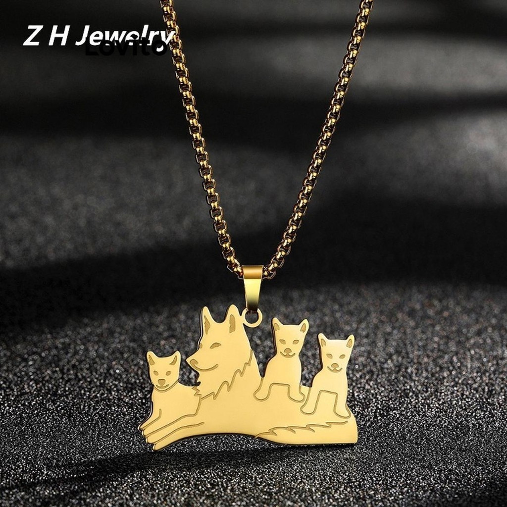 Lovito Colares Punk Casuais De Aço Inoxidável De Lobo Liso Para Mulheres LCS06604