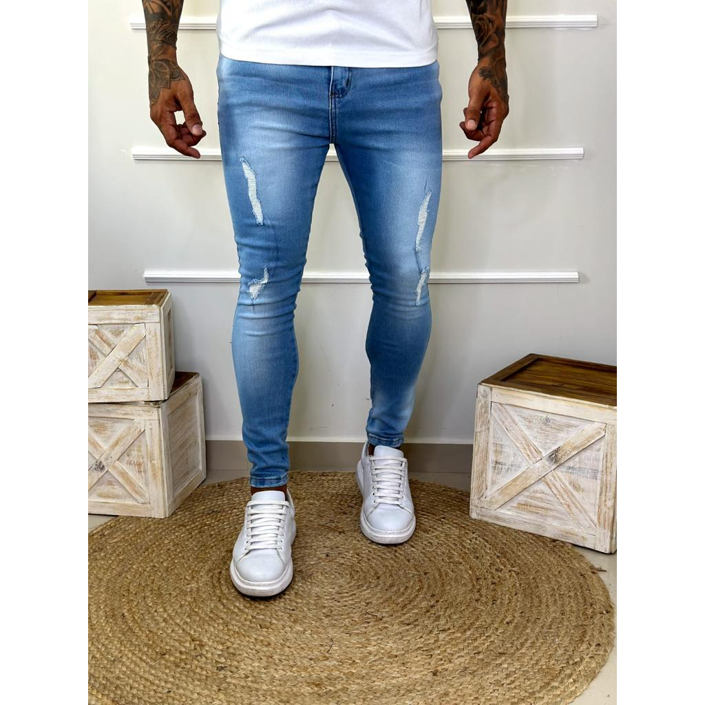 Calça Super Skinny Masculina Rasgada Destroyed Jeans Com Lycra