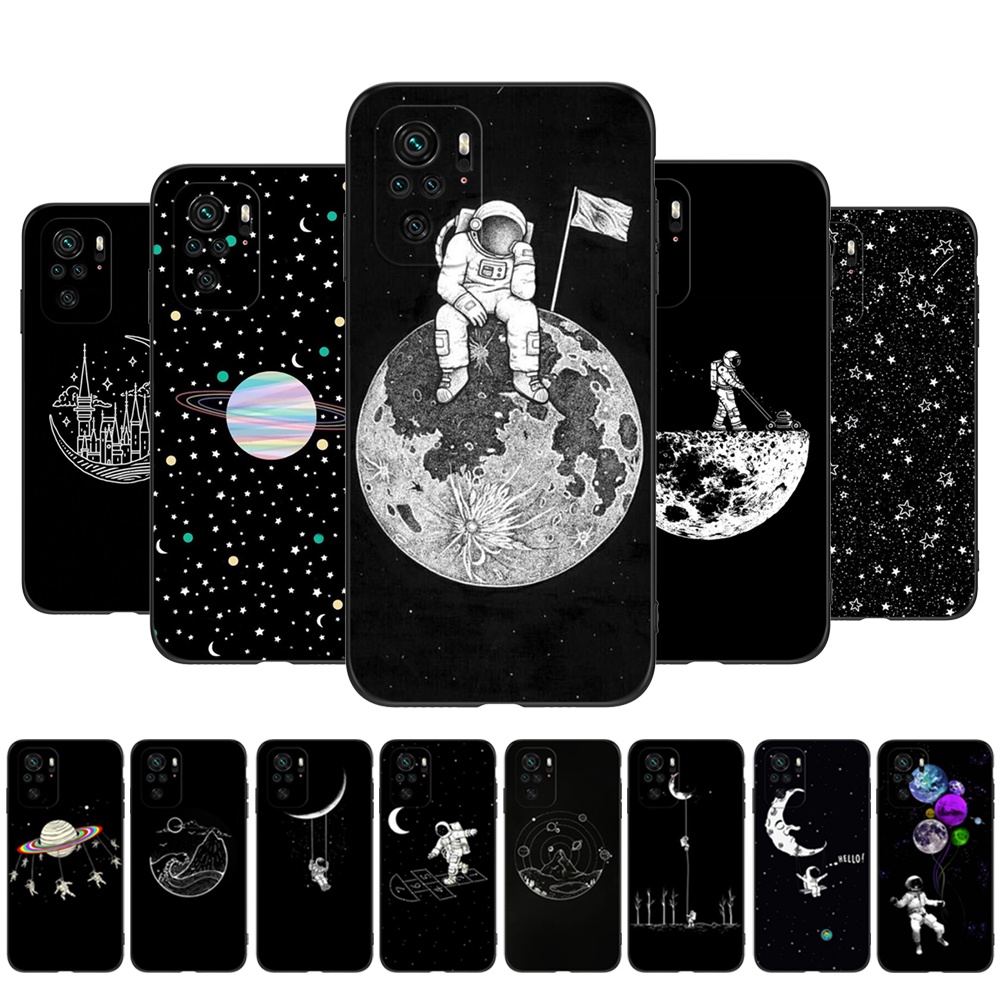 Para Xiaomi Poco M5s 4G Capa Traseira Do Telefone Silicone Macio Protetor De Preto Tpu Case Space Moon star